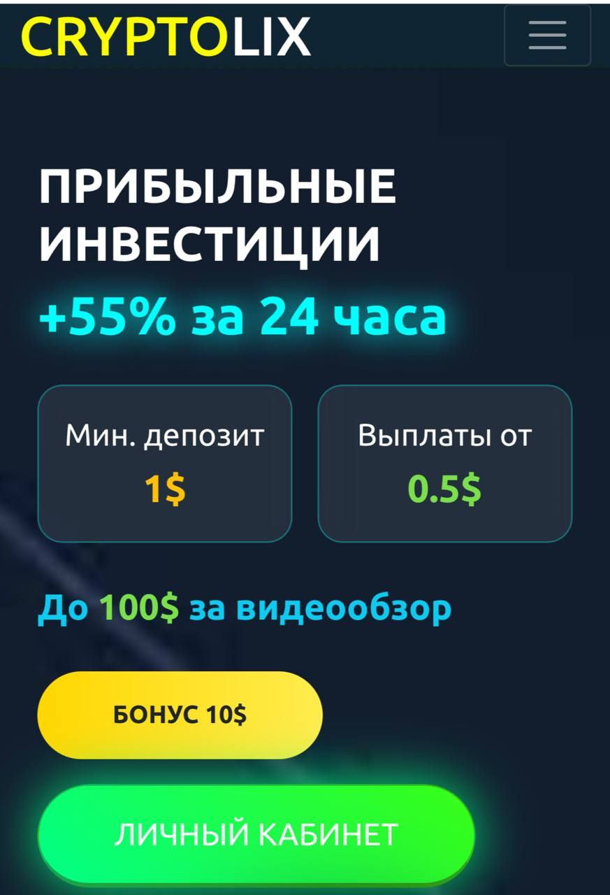 Cryptolix – это платформа, ориентированная на заработок в криптовалюте, предлагающая привлекательные условия для инвесторов. Давайте разберем все детали, чтобы вы могли принять взвешенное решение.