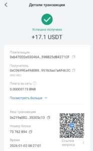 Поддерживаемые сети для пополнения и вывода: BEP20, BNB, USDT, USDC.