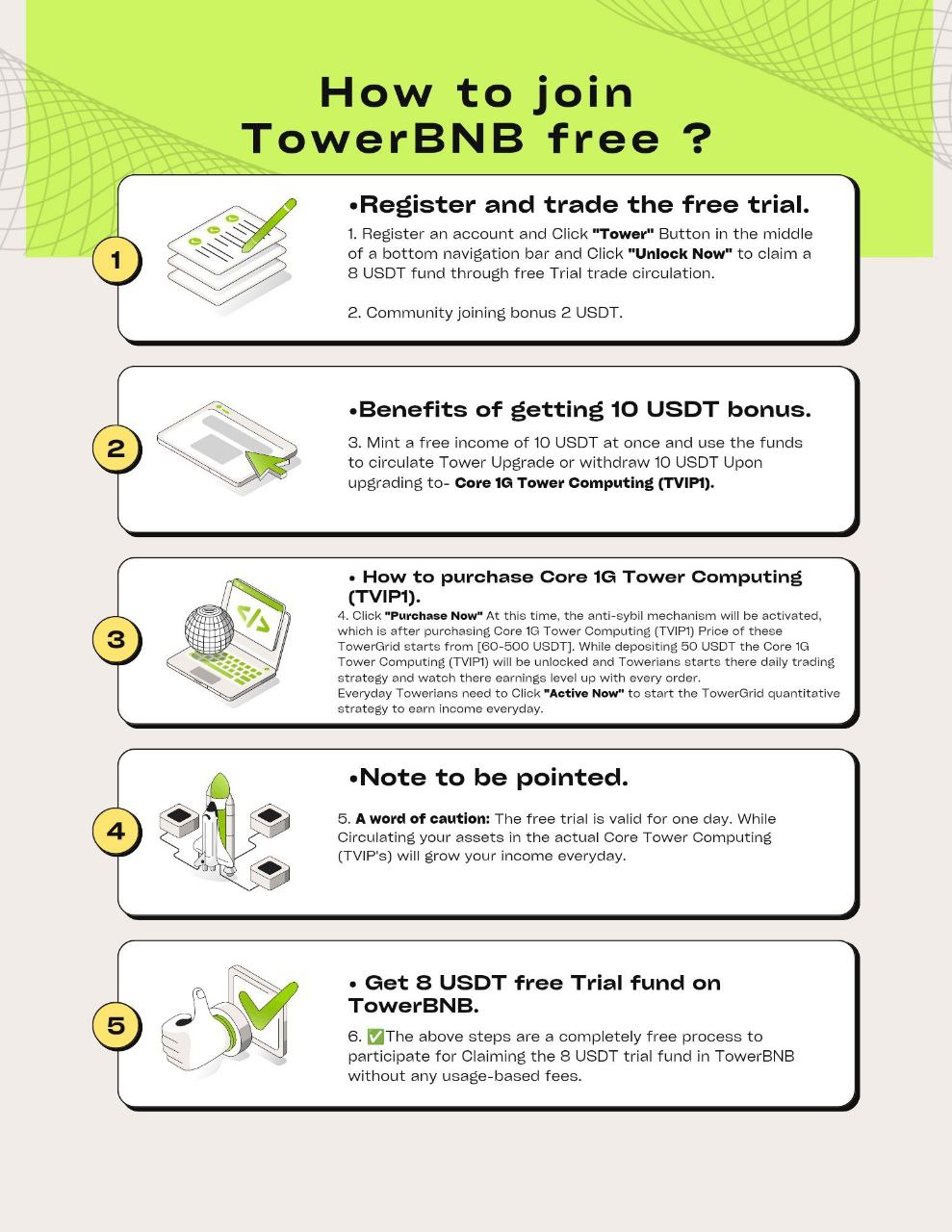TowerBNB ценит своих пользователей и предлагает дополнительные бонусы за активность в сообществе. За присоединение к сообществу вы получаете еще 2 USDT.