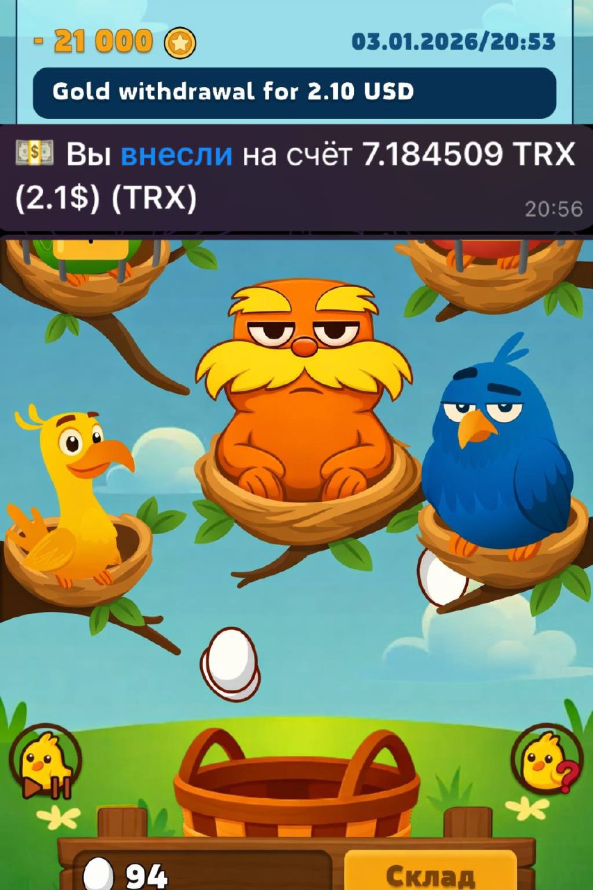 - 🔁 100 яиц = 1 золото – а золото – это уже валюта для вывода!