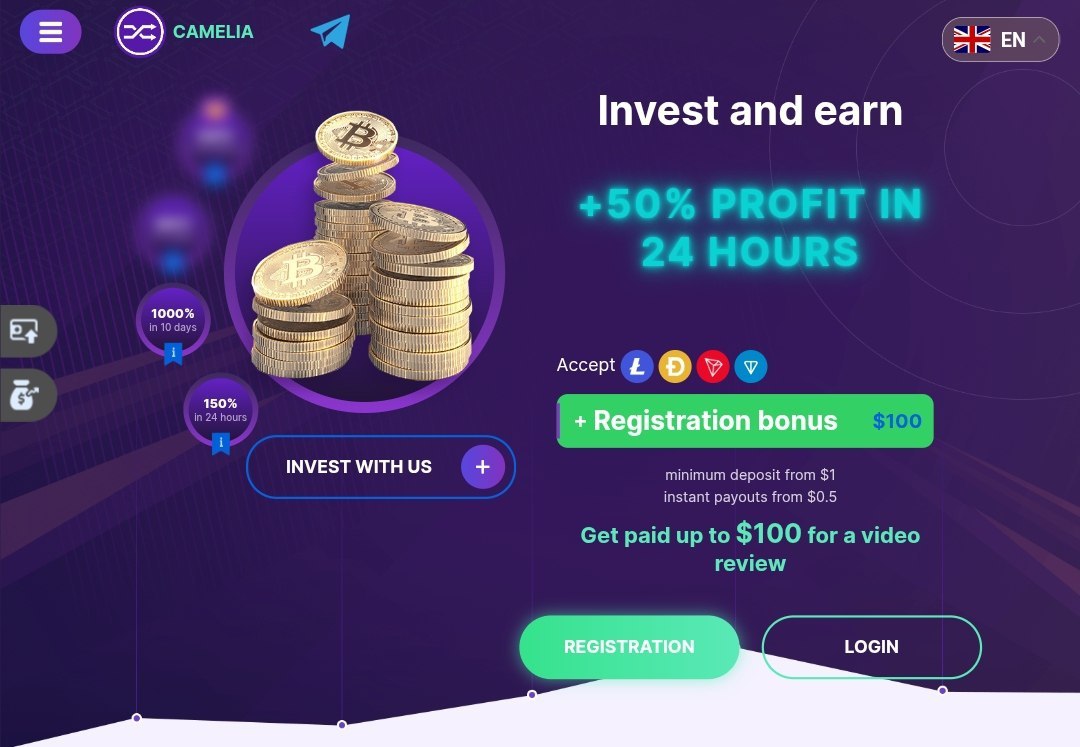 Мгновенные выплаты – еще один плюс, который делает CAMELIA³ привлекательным для инвесторов.