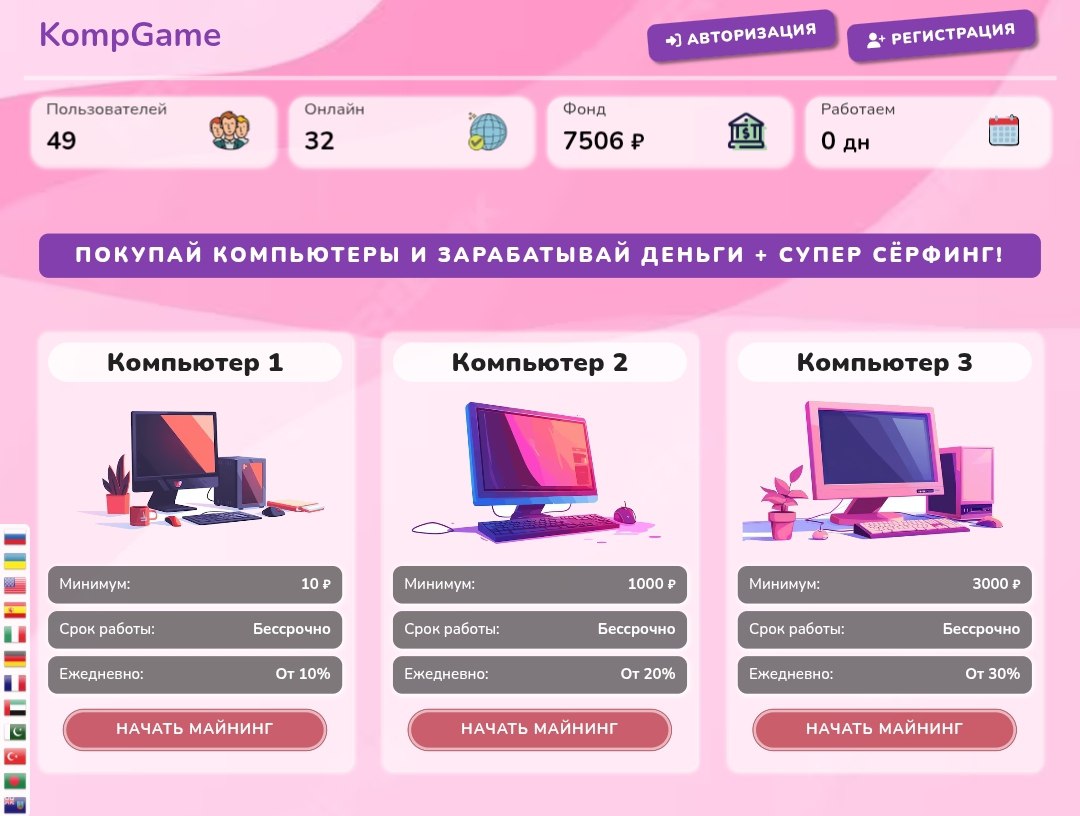 В KOMP GAME все просто и прозрачно. Ваши средства будут работать на вас 24/7, принося стабильный доход. Начисления происходят каждую секунду, что позволяет вам видеть рост своего баланса в реальном времени.